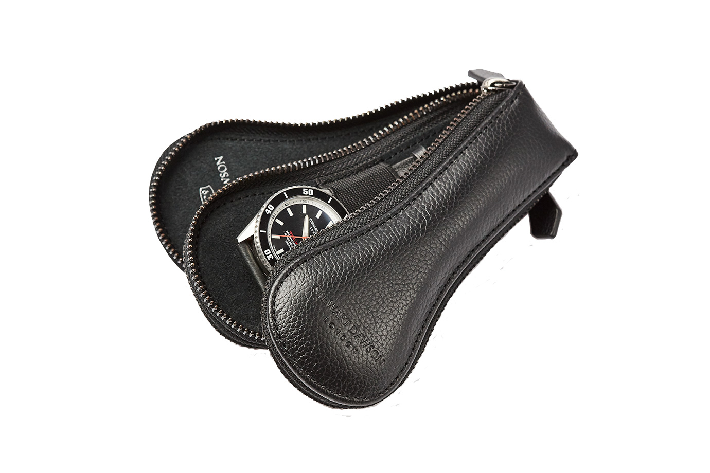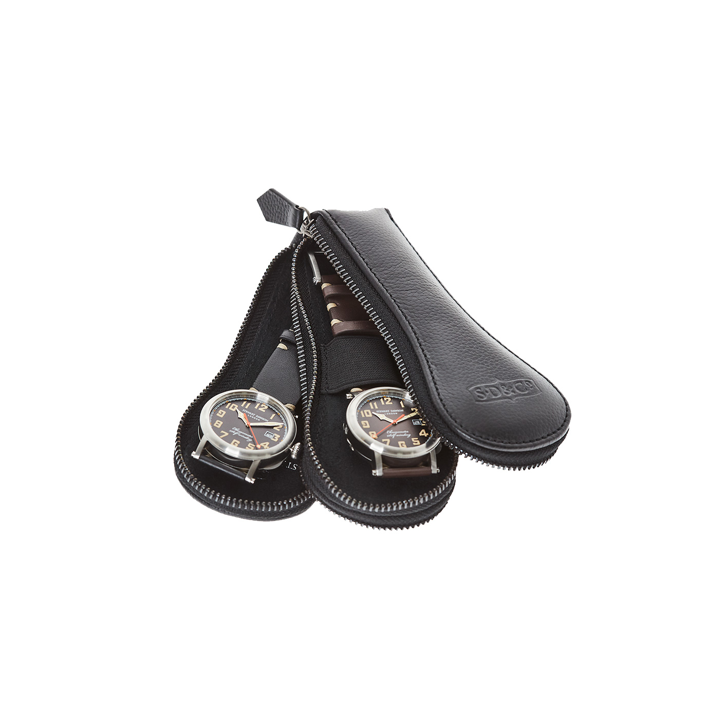Two Watches Holder / Zip Leather Pouch