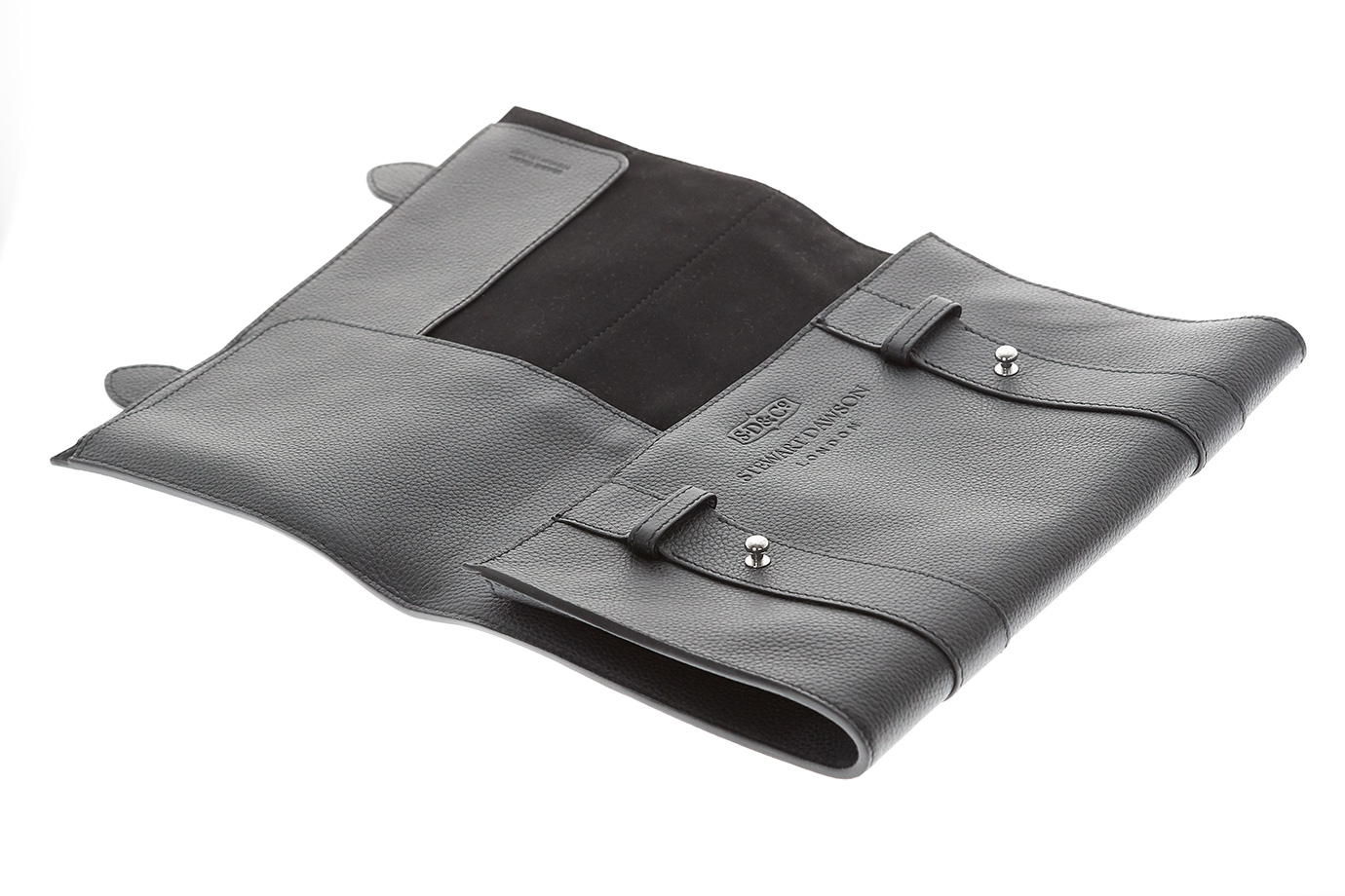 Italian leather with embossed house’s emblem. It is sized to hold easily around your watches and